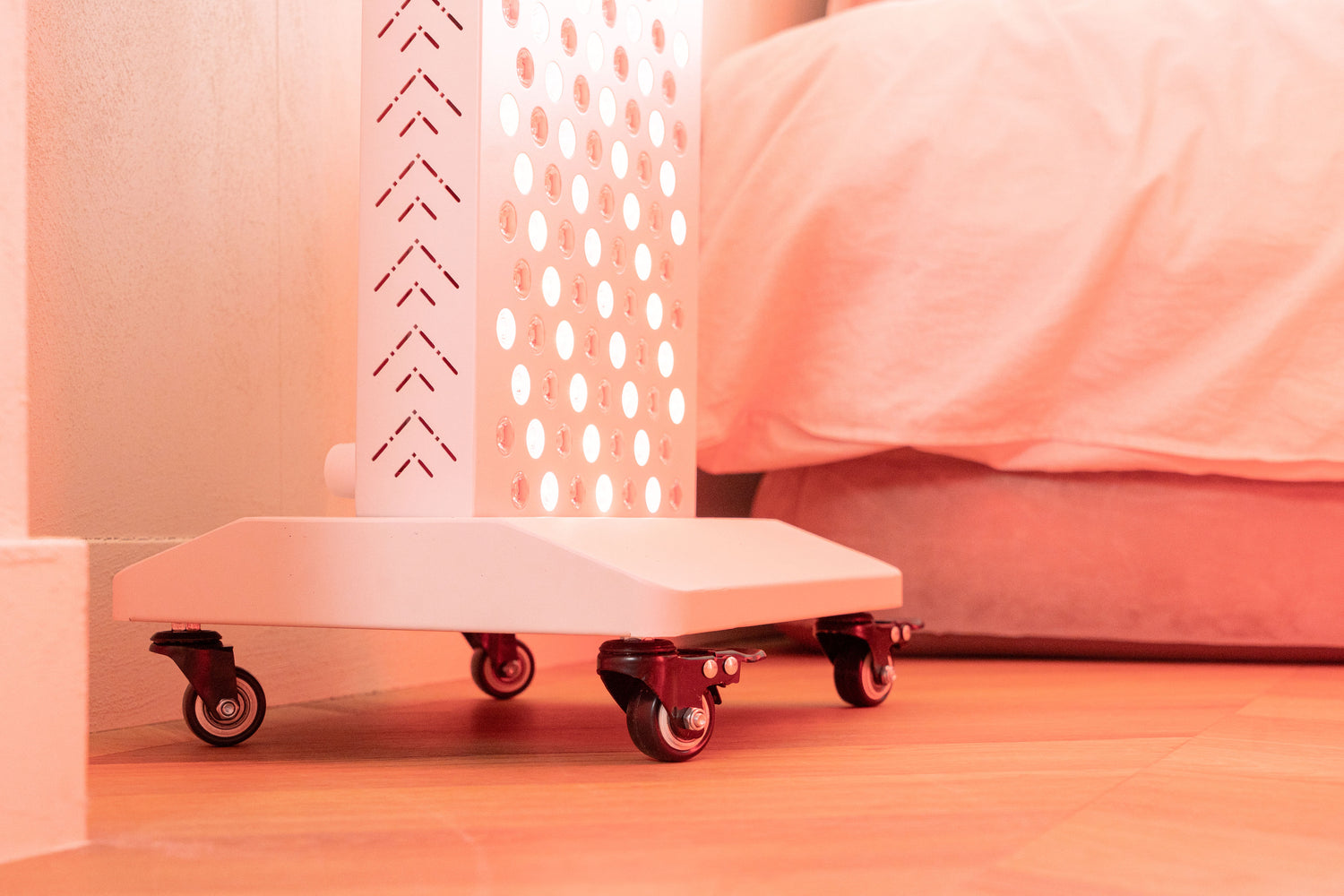 Met het verrijdbare standaard breng je rood licht therapie eenvoudig naar elke ruimte in huis. Plaats je paneel in de houder en rol het moeiteloos naar de slaapkamer, woonkamer of zelfs je homegym. Zo geniet je altijd en overal van een comfortabele behandeling, precies waar het jou uitkomt.