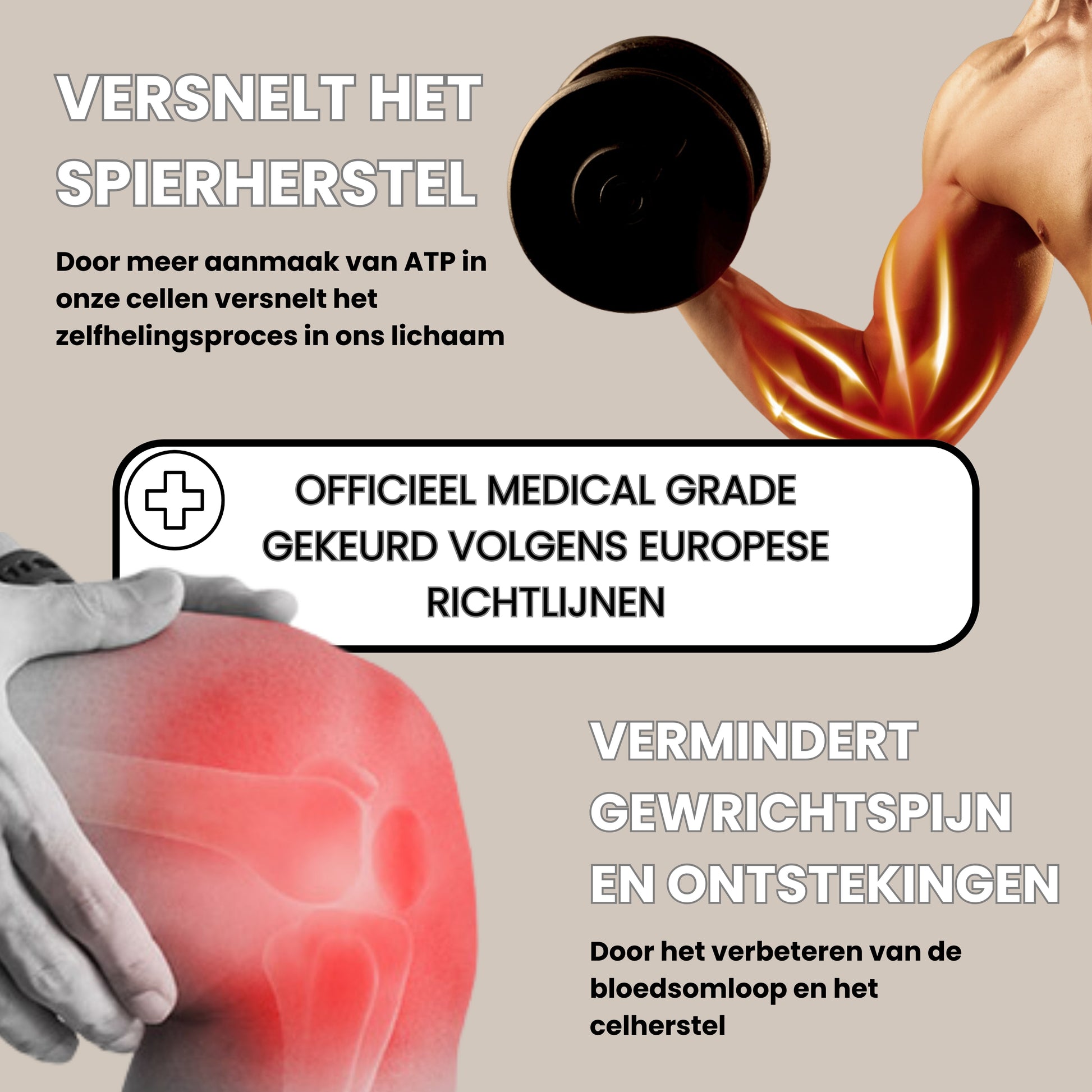 - Herstel na inspanning: Versnelt het natuurlijke herstelproces van het lichaam na fysieke inspanning, waardoor spierpijn wordt verminderd en het herstel wordt bevorderd.