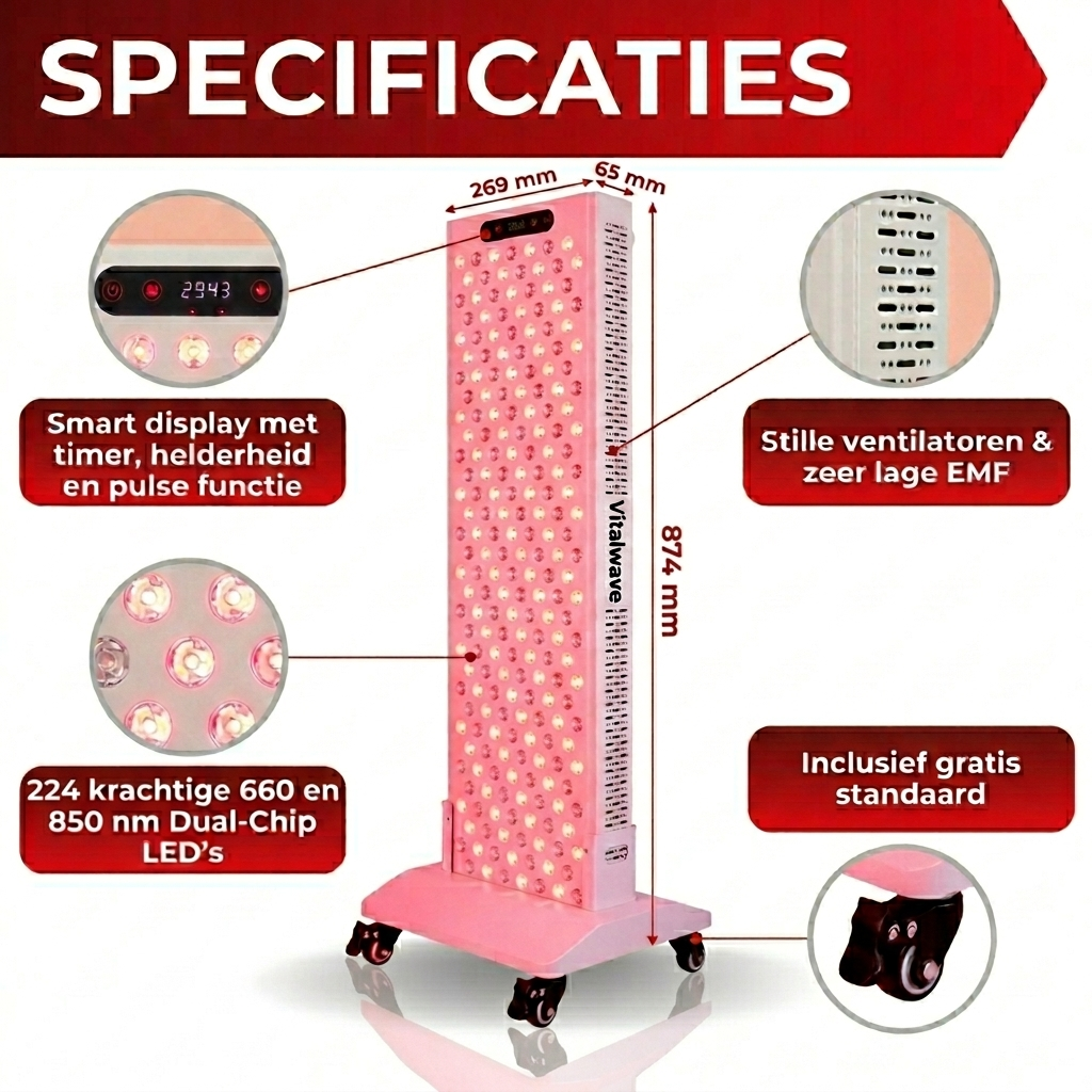 We vragen alleen dat je het product compleet en netjes terugstuurt. Zo kun je rood licht therapie echt op je gemak ervaren — 100% zonder risico.