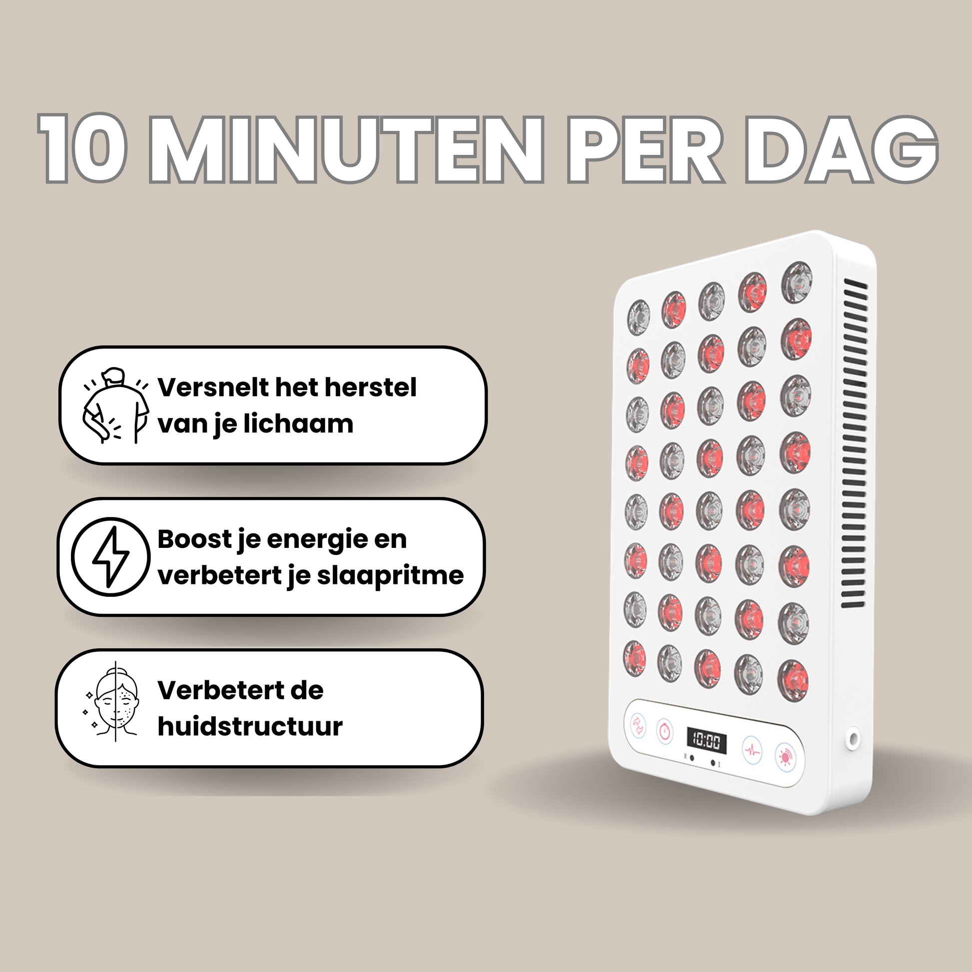 Ik had veel eerder moeten beginnen met roodlichttherapie! Ik gebruik hem dagelijks in de winter wanneer het buiten donker is en merk dat ik meteen meer energie ervan krijg, ook gebruik ik het voor spieren die stijf zijn. Mega aanrader!
