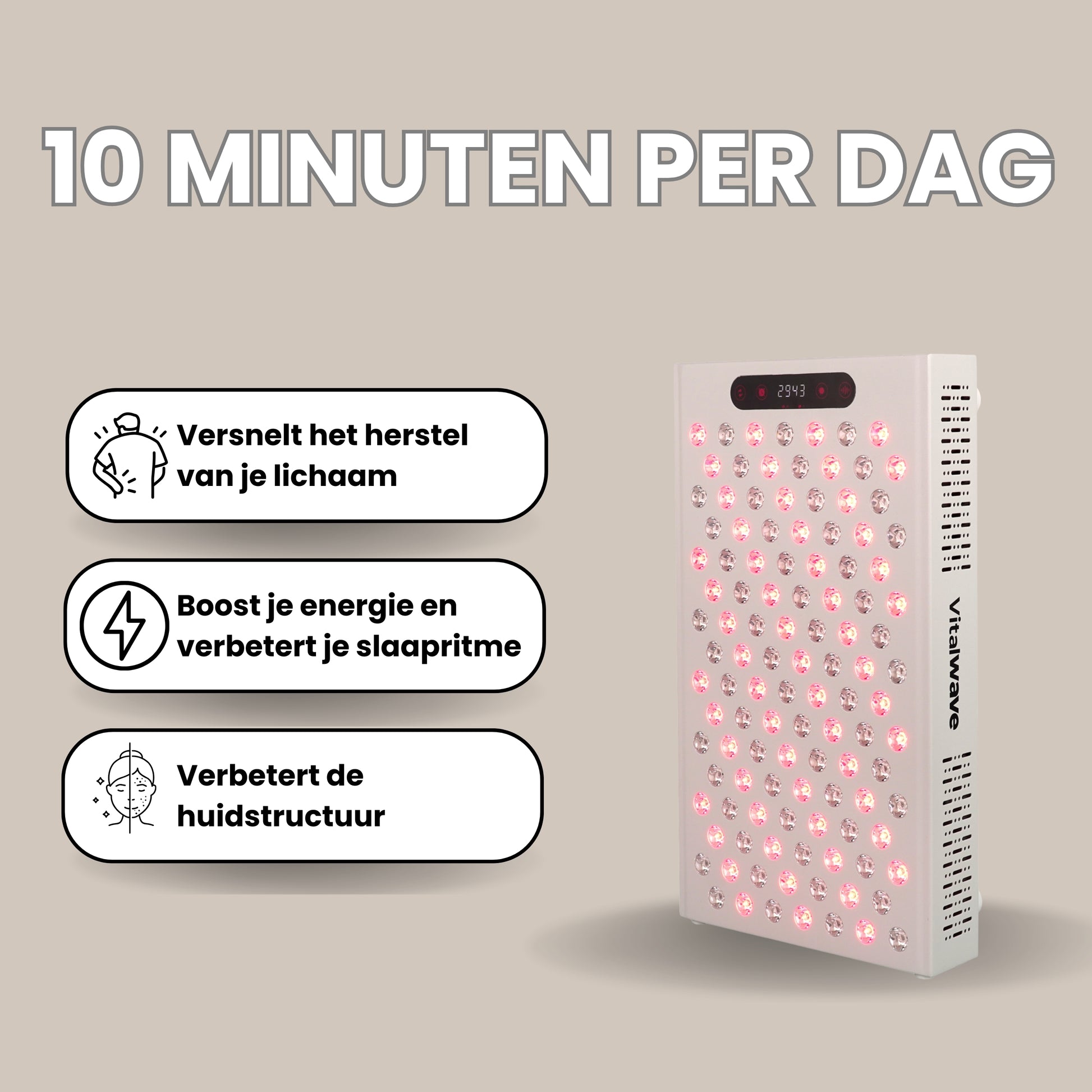 Snelle levering, duidelijke uitleg en een paneel dat echt kwaliteit uitstraalt. Ik merk al verschil in mijn huid en herstelvermogen. Ik raad Vitalwave absoluut aan.