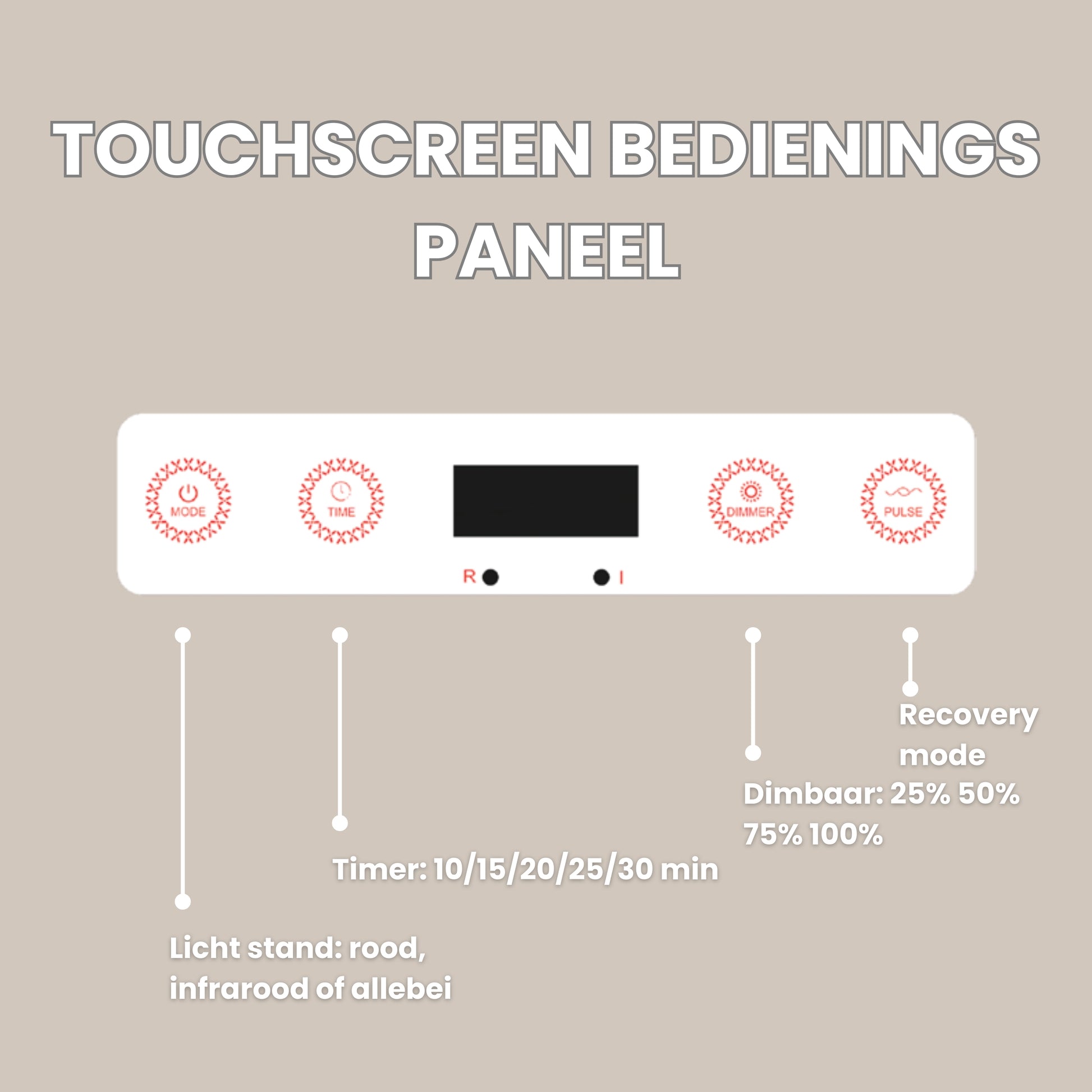 - Golflengtes: 660 nm rood licht en 850 nm nabij-infrarood licht